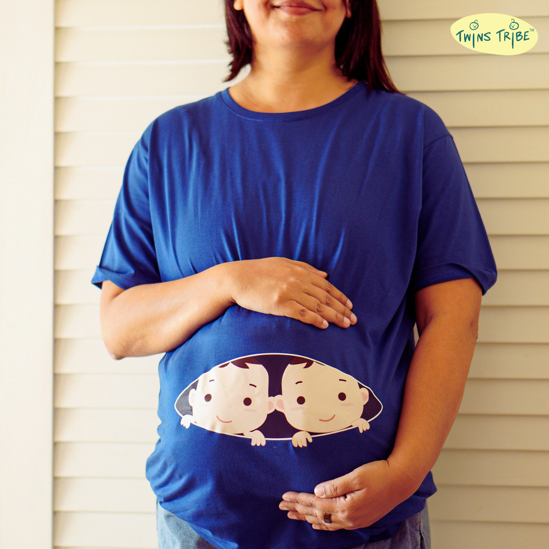 Introducing our adorable "Peek-a-boo" print tee, specially designed for expecting twin moms!