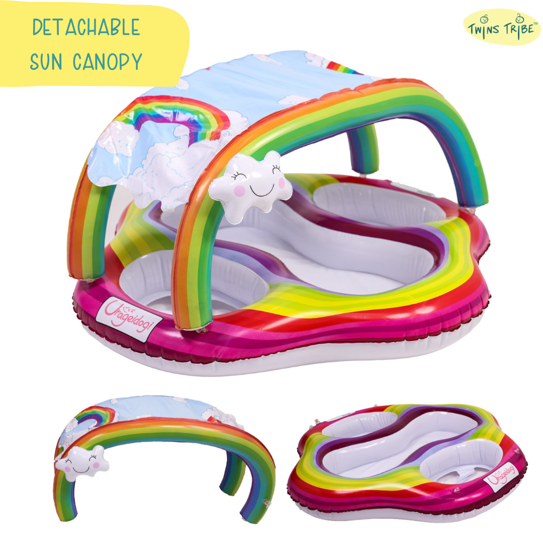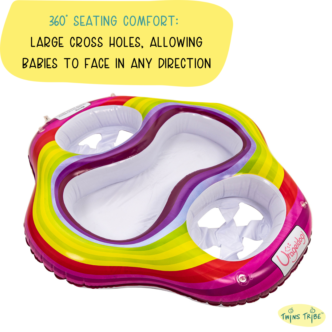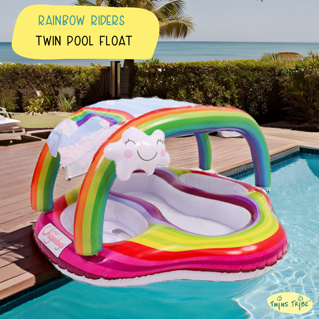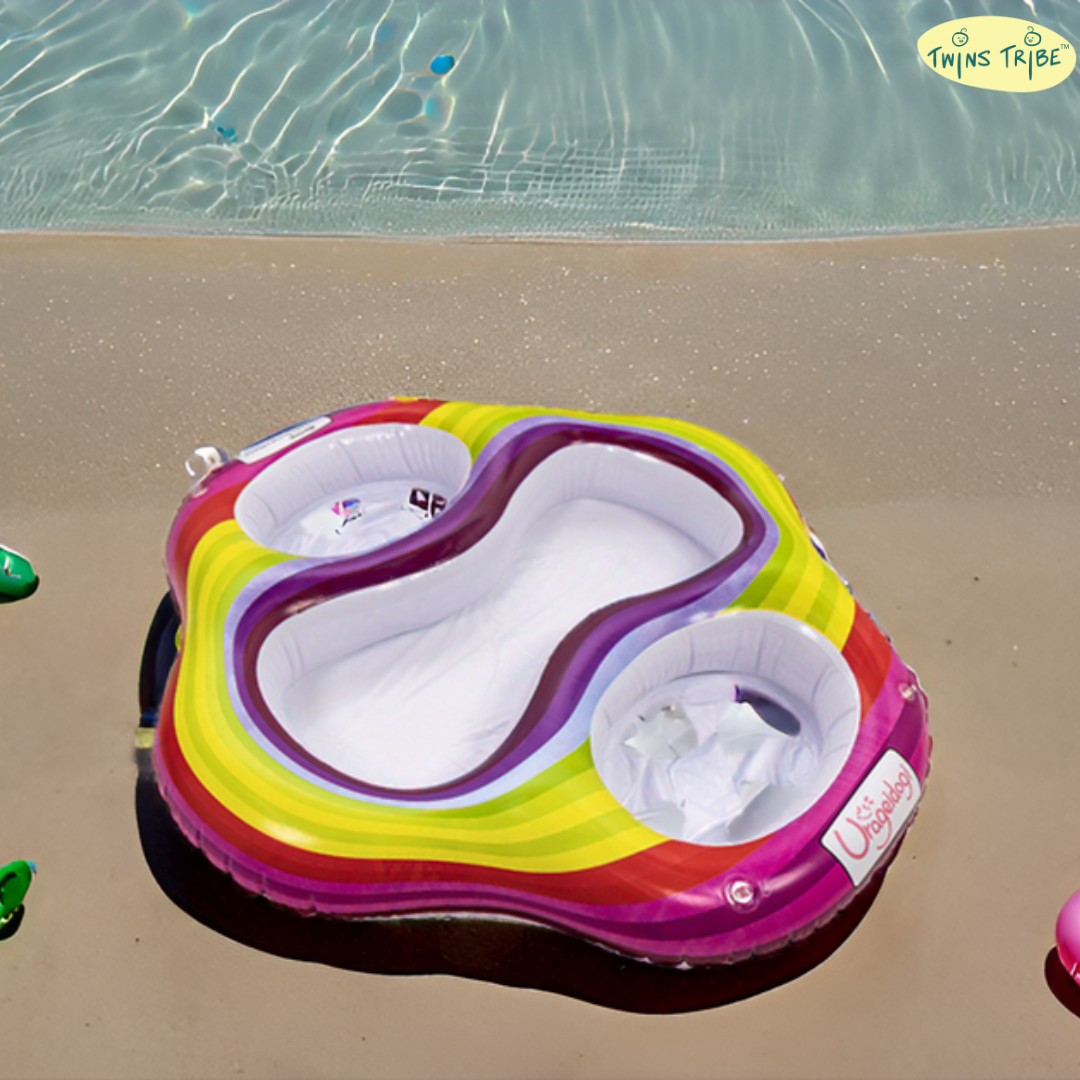 Make your pool time and summer holidays unforgettable with our Rainbow Riders Float, designed especially for twins. With vibrant rainbow colors, cheerful cloud details, and a built-in play zone, this inflatable float makes pool time safe, joyful, and easy for twin parents.
