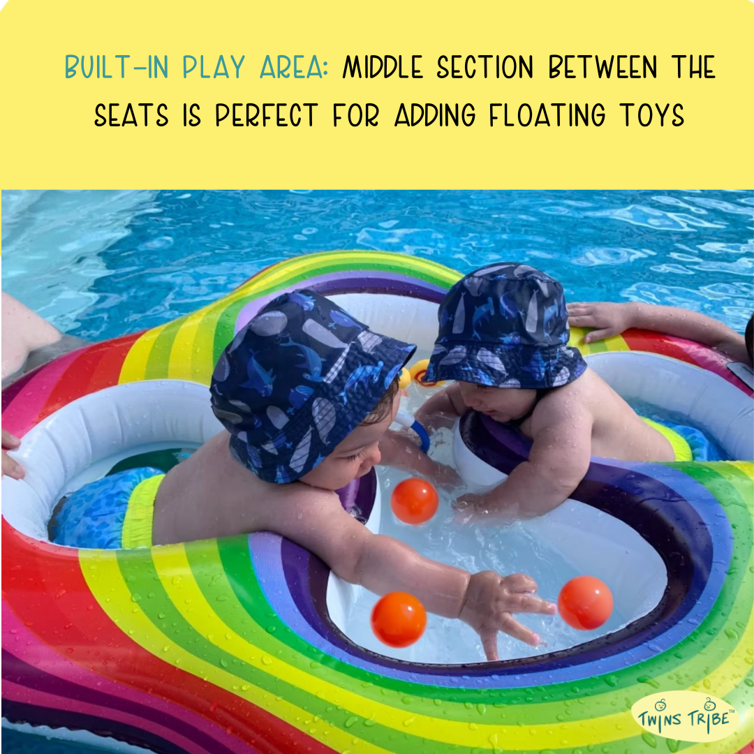 🧸 Built-In Play Area: The middle section between the seats is perfect for adding floating toys, keeping the babies entertained while they cool off.
