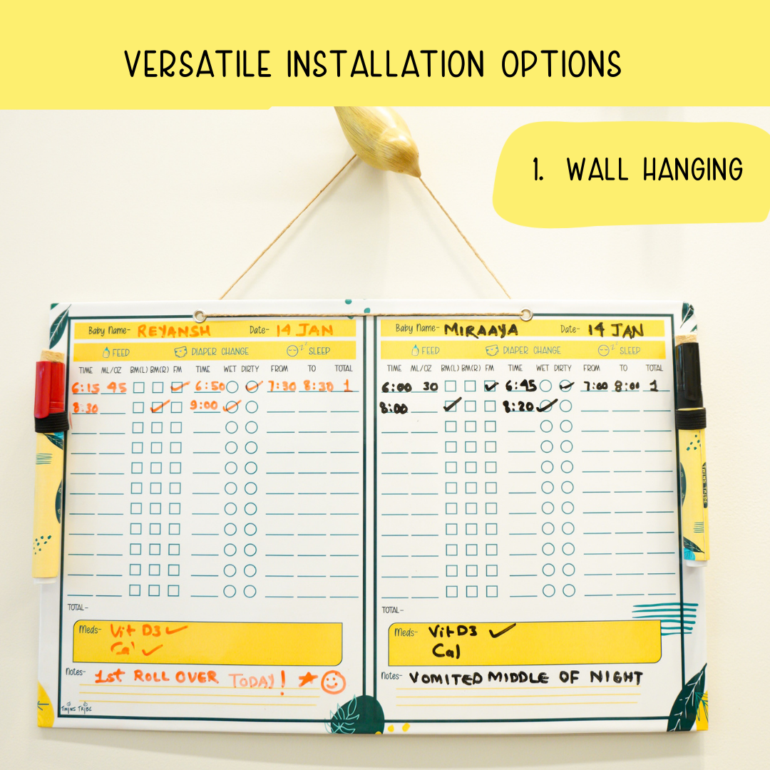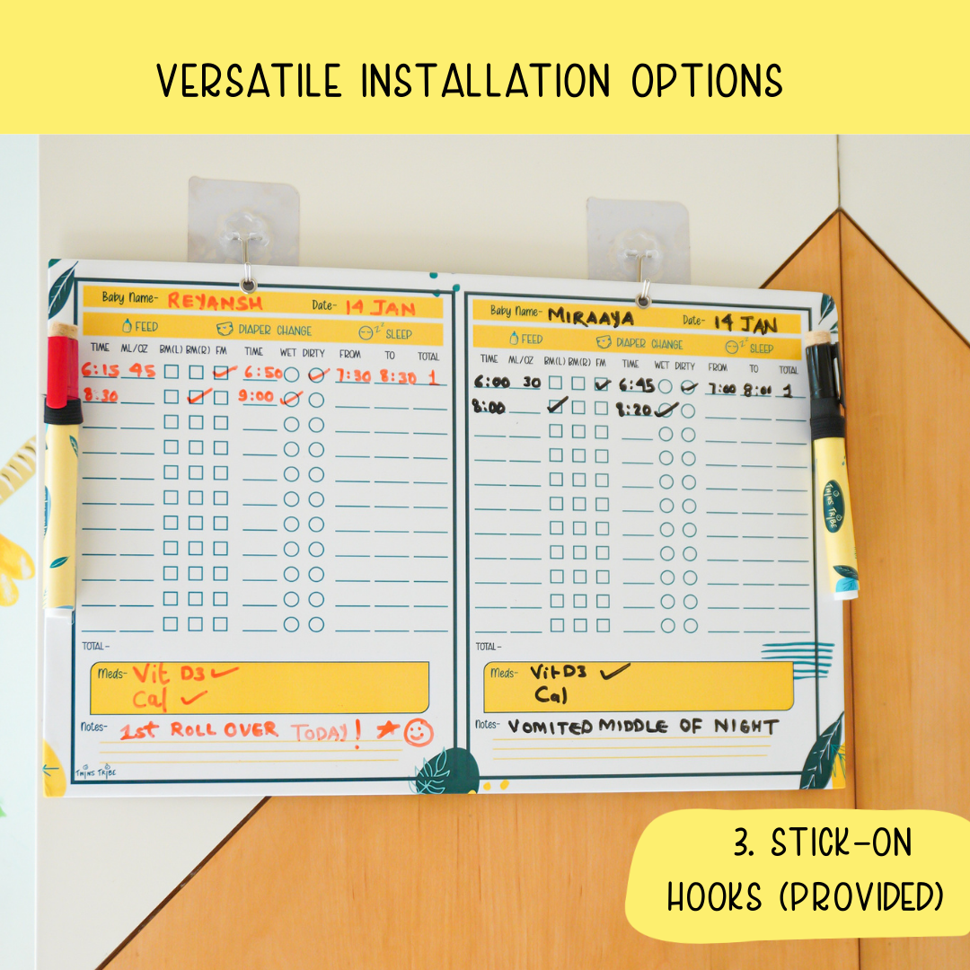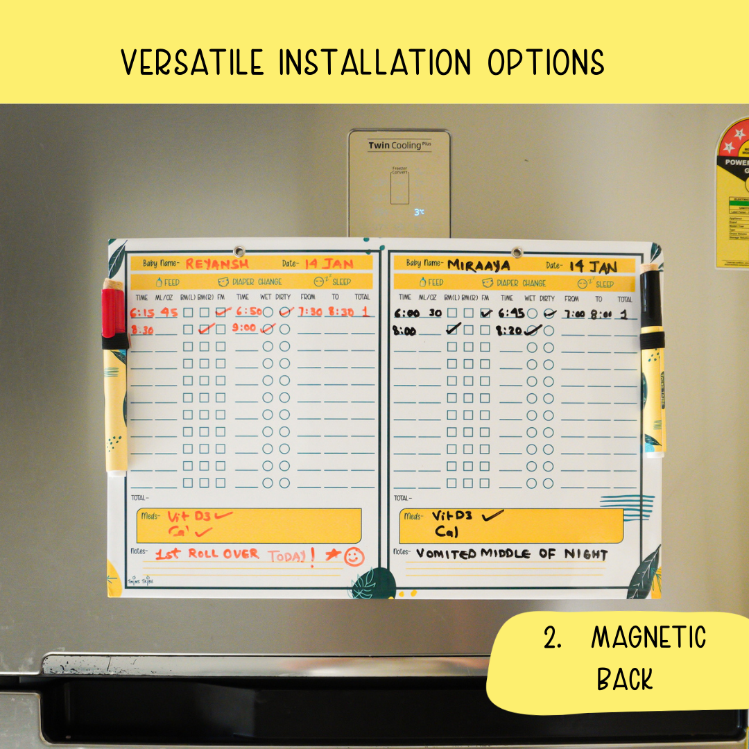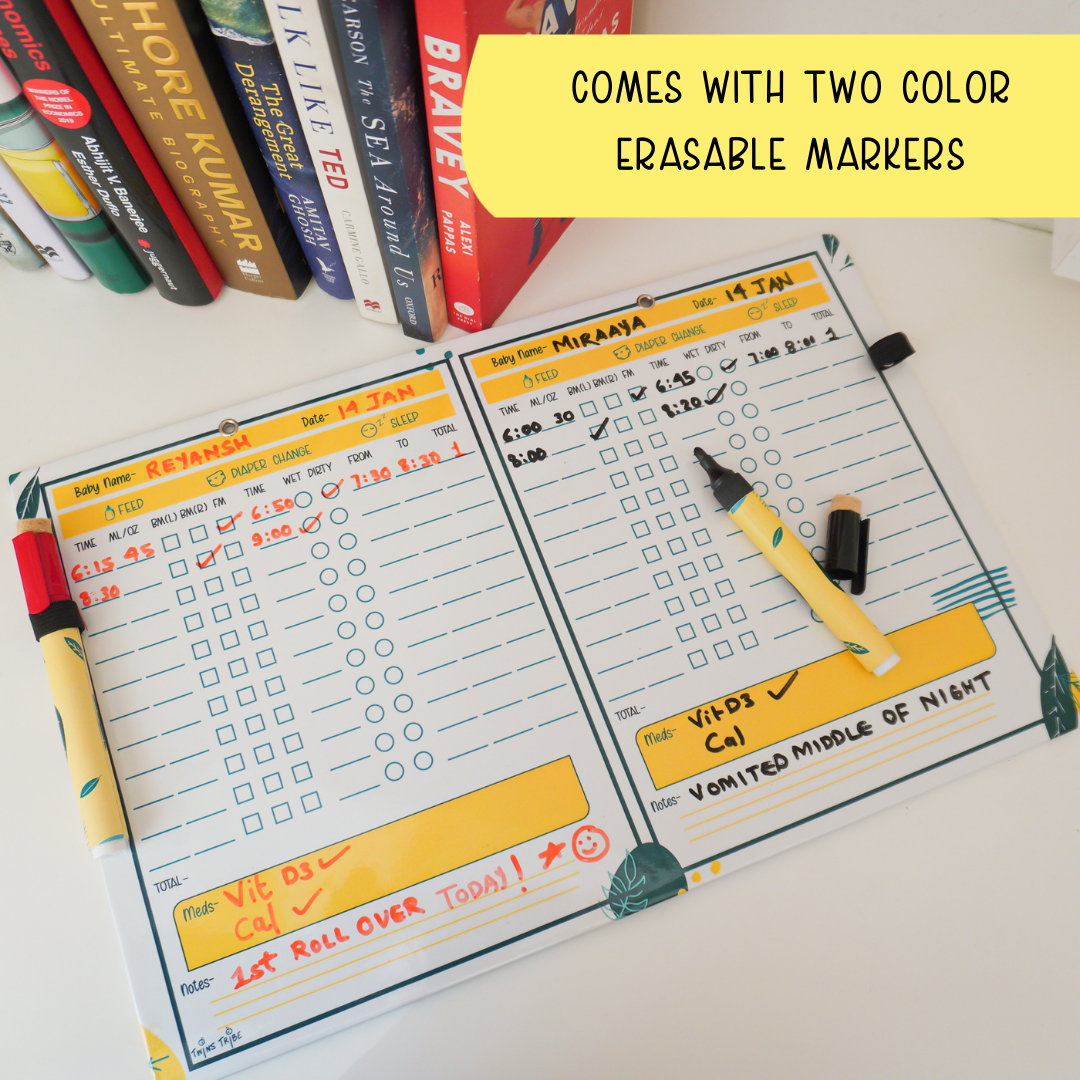 - Erasable Markers: Comes with two different color markers for visually distinct records for each baby.