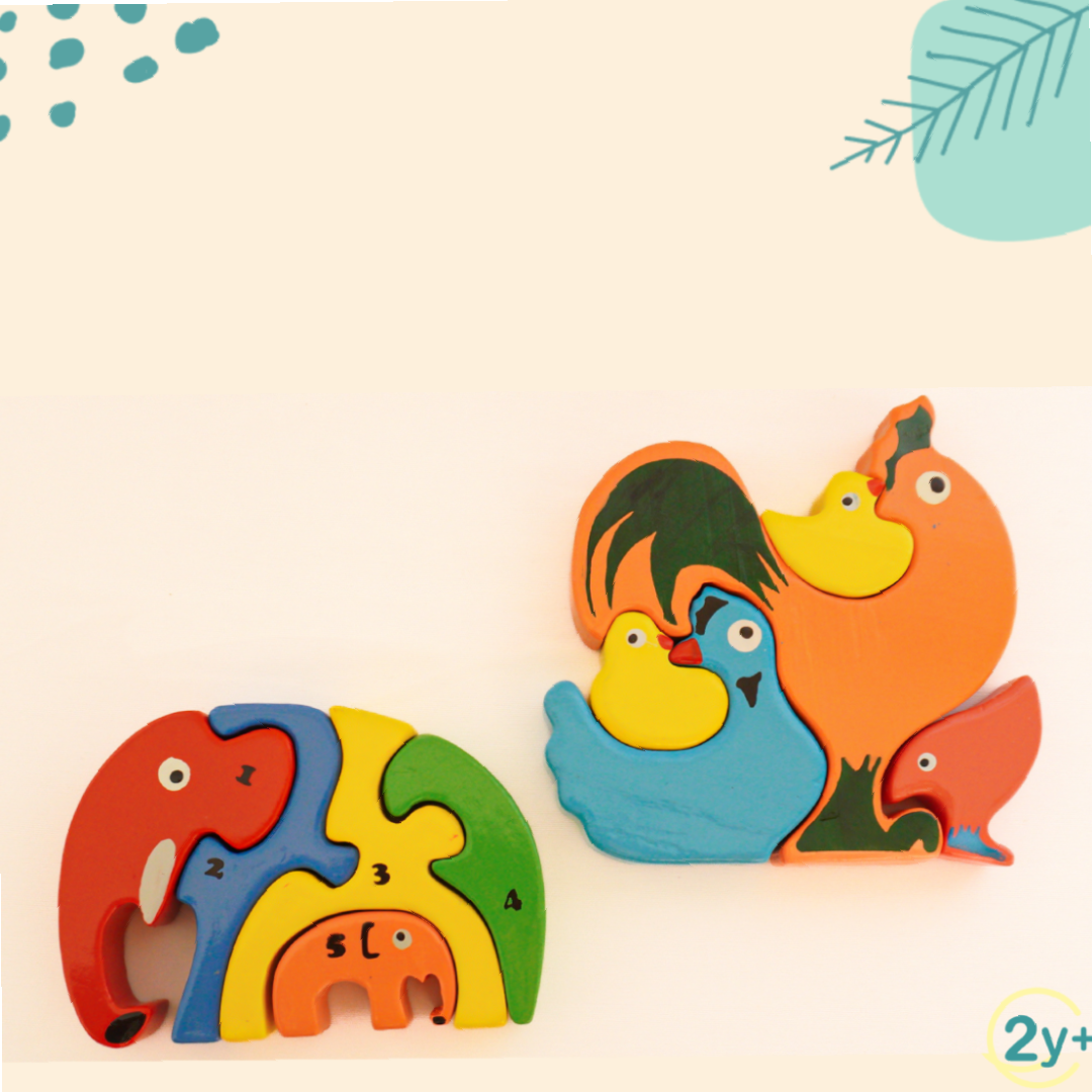 - Delight your little ones with two endearing animal families - Chickens and Elephants. Engage them with double-sided puzzles, showcasing vibrant colours, shapes, and numbers.
