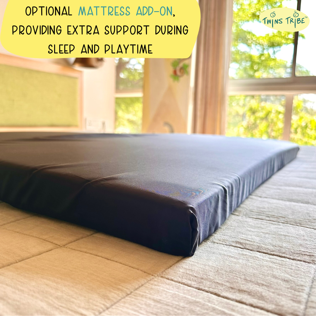 Optional Mattress Add-On for Added Comfort: Enhance your babies' comfort with the optional mattress add-on, providing extra support during sleep and playtime.