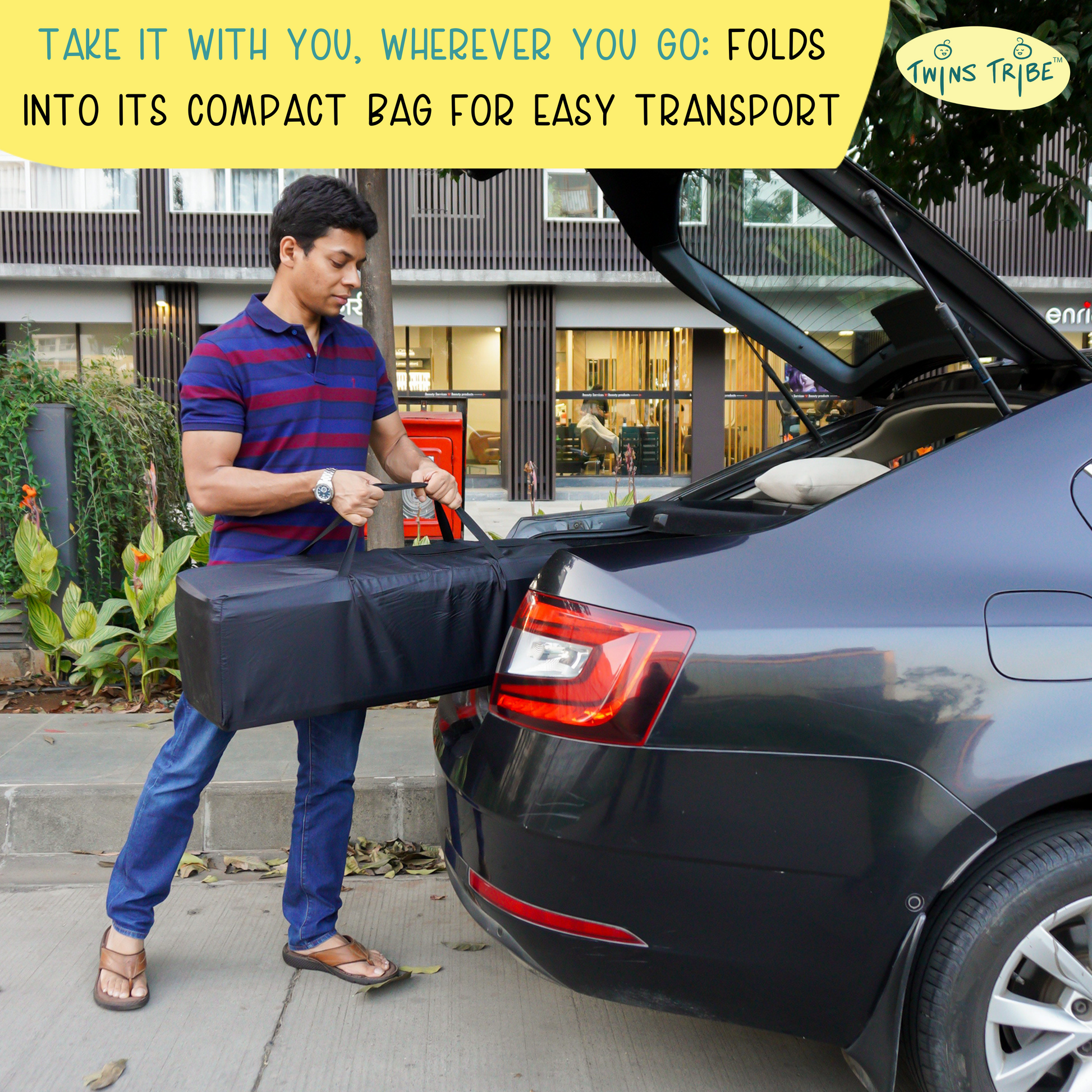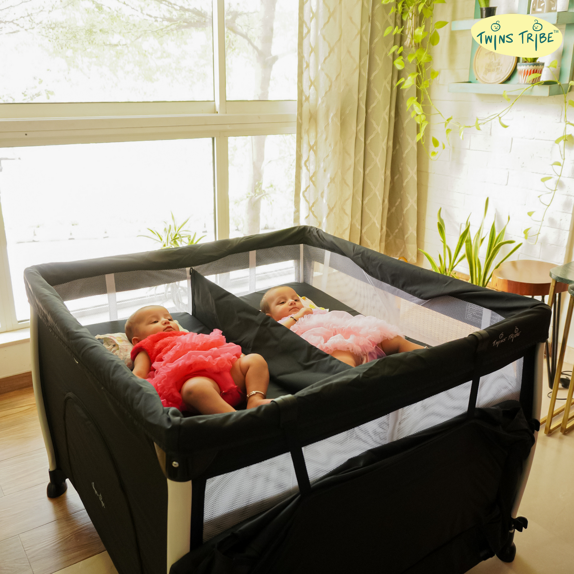 Introducing the TwinsTribe Nap n' Play: Twin Bassinet cum Playpen, a practical solution meticulously designed to cater to the dynamic needs of twin parents. Crafted by twin parents, this versatile twin nursery seamlessly transitions between providing a cozy sleeping space and a stimulating play area for your little ones.