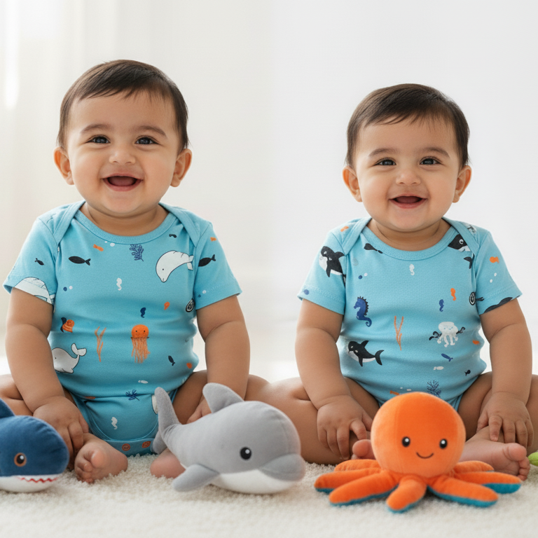 Gift Suggestions: Our clothing sets come with an option to add on a stylish gift box for stress-free gifting. These sets make the perfect gift for any occasion – baby showers, welcoming new twins, milestones, or birthdays!